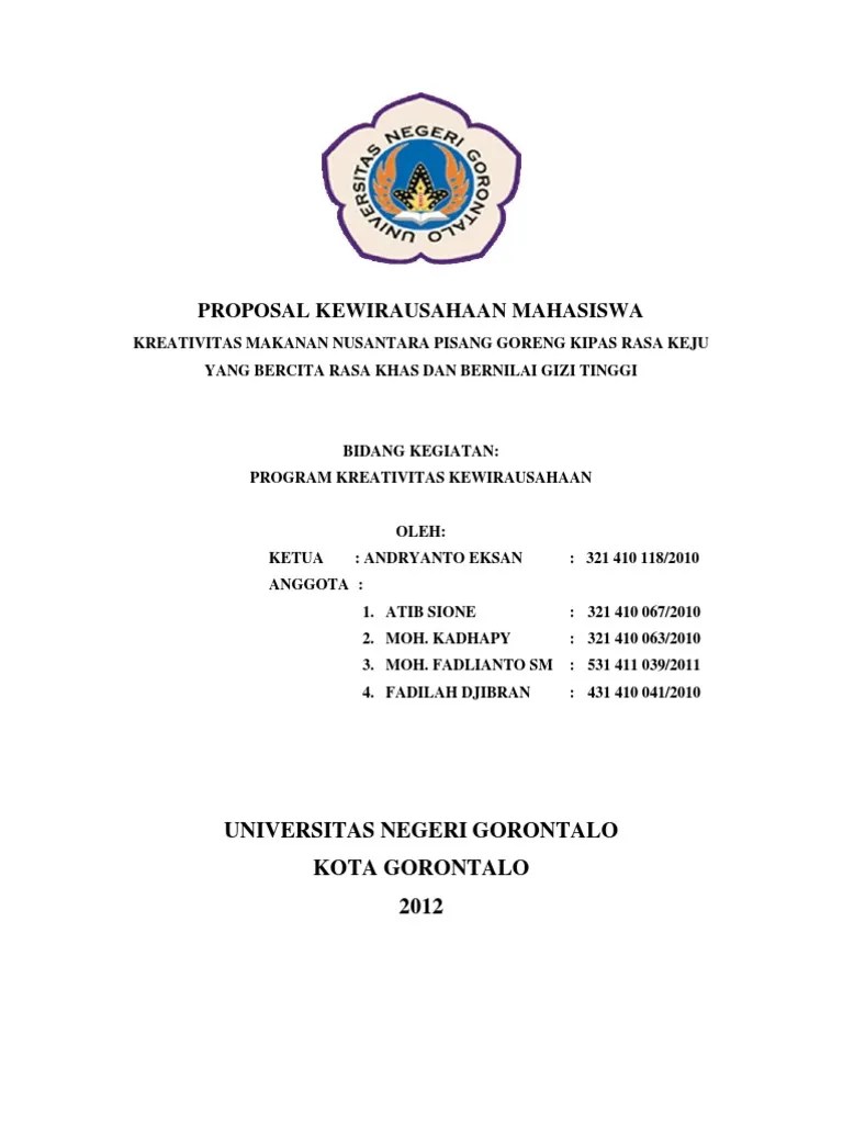 Usaha ini saya namakan bakwan hungaria karena sebelumnya ada makanan yang sejenis bakwan di hungaria yang dinamakan strapacska yang terbuat dari potongan . Dalam bidang bisnis atau usaha, . Contoh cover proposal usaha proposal bisnis pengusaha from id.pinterest.com. 10+ contoh cover proposal skripsi, kegiatan dll (baik & benar) img. Berikut ini contoh proposal usaha makanan yang bisa kamu jadikan referensi.